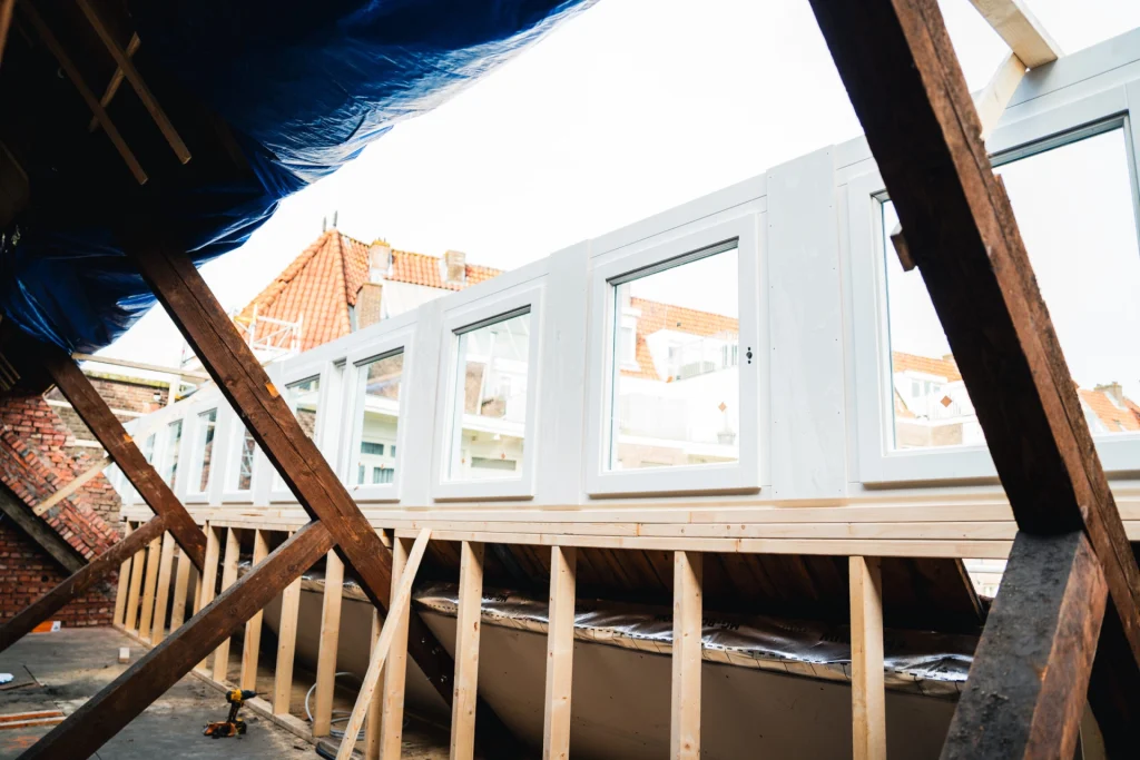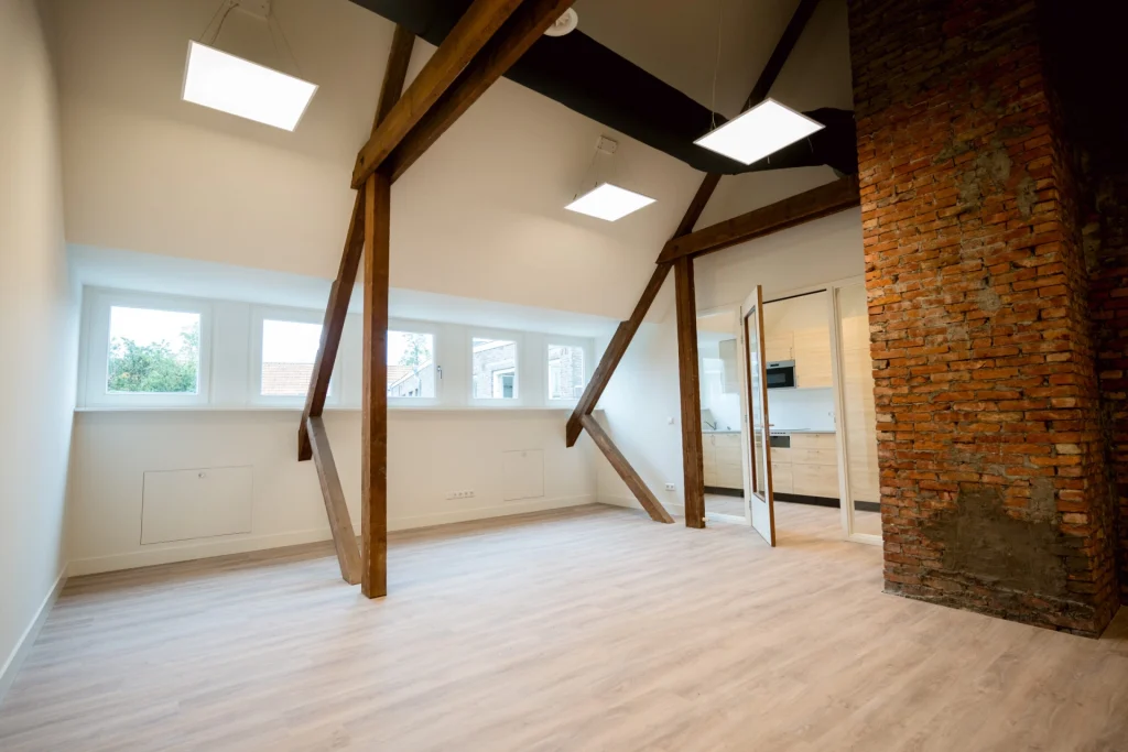 - Tevens hebben wij in de huidige kapconstructie een 22 meter lange dakkapel gemaakt, die zorgt voor voldoende licht inval op de nieuwe verdiepingsvloer. Die de authentieke details van de kapconstructie belichten, wat de verdiepingsvloer weer een unieke uitstraling geeft.